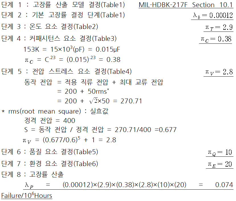 커패시터 신뢰도 예측 사례 (MIL-HDBK-217F 기준)