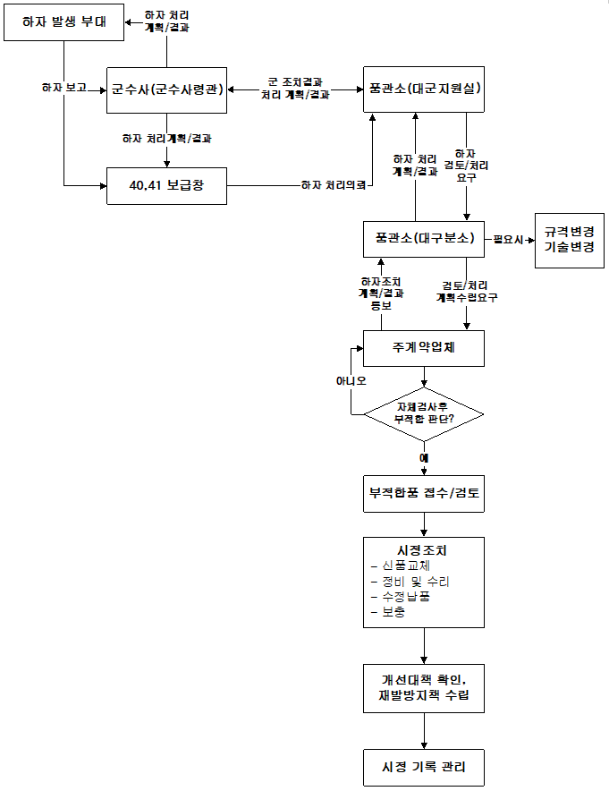 | 하자품 발생시 지원 | - 군수품의 하자 발생시 지원방안 및 업무절차 수립 | |