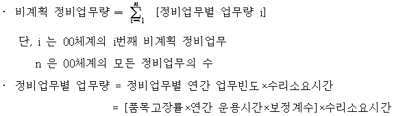 (3) 정비업무별 비계획 소요시간은 LSA-001 보고서의 식을 적용하였다.